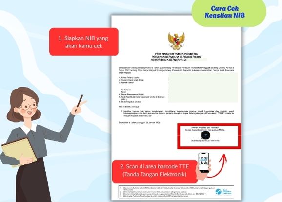 1. Siapkan NIB yang akan dicek lalu scan pada bagian pojok kanan bawah kode QR Tanda Tangan Elektronik