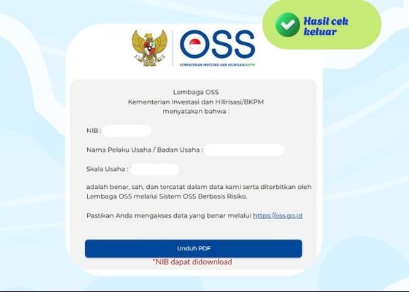 3. Maka hasil cek NIB akan keluar seperti berikut dan NIB tersebut juga dapat diunduh